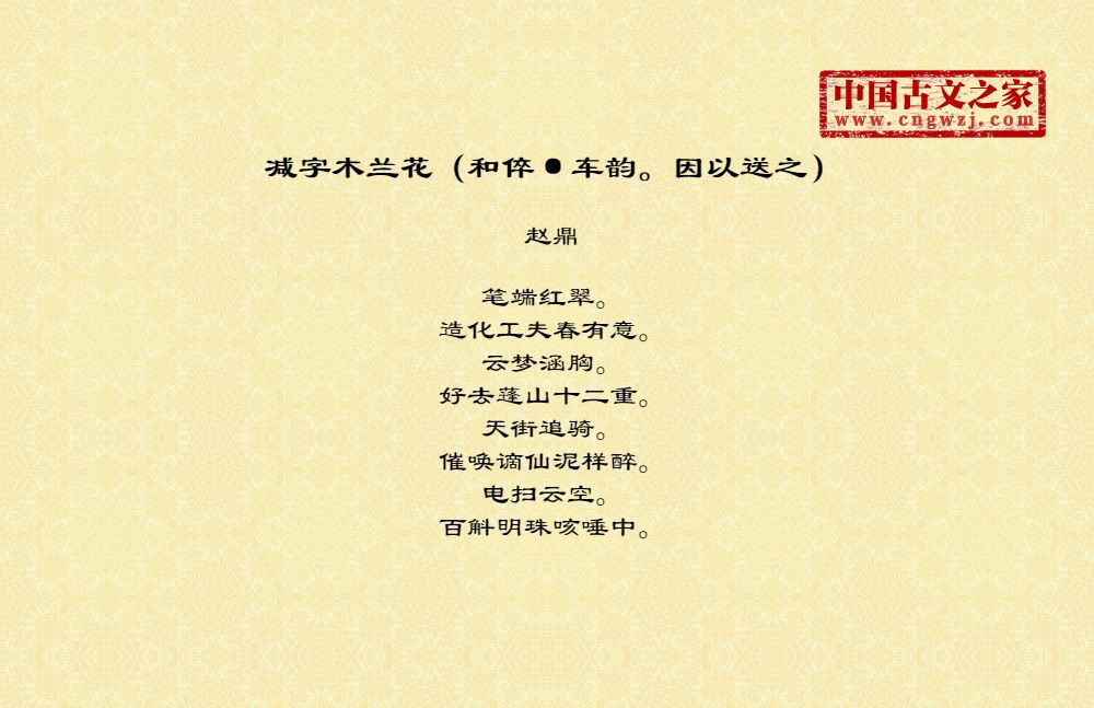 《减字木兰花(和倅·车韵。因以送之)》由赵鼎创作