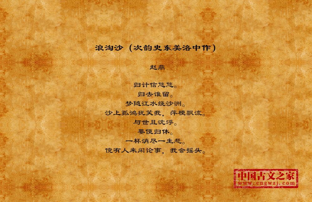 《浪淘沙(次韵史东美洛中作)》的原文打印版(赵鼎)