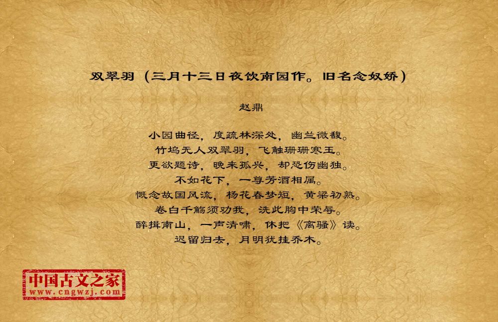 双翠羽(三月十三日夜饮南园作。旧名念奴娇)