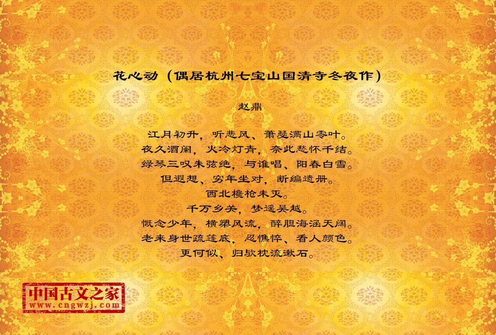《花心动(偶居杭州七宝山国清寺冬夜作)》的原文打印版(赵鼎)