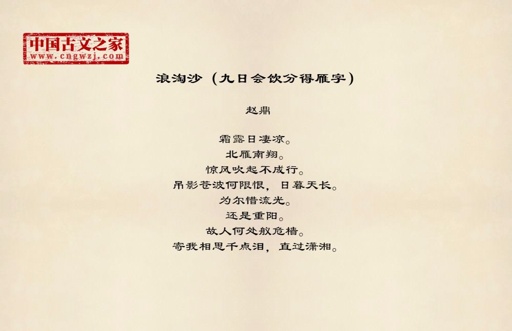 《浪淘沙(九日会饮分得雁字)》的原文打印版(赵鼎)