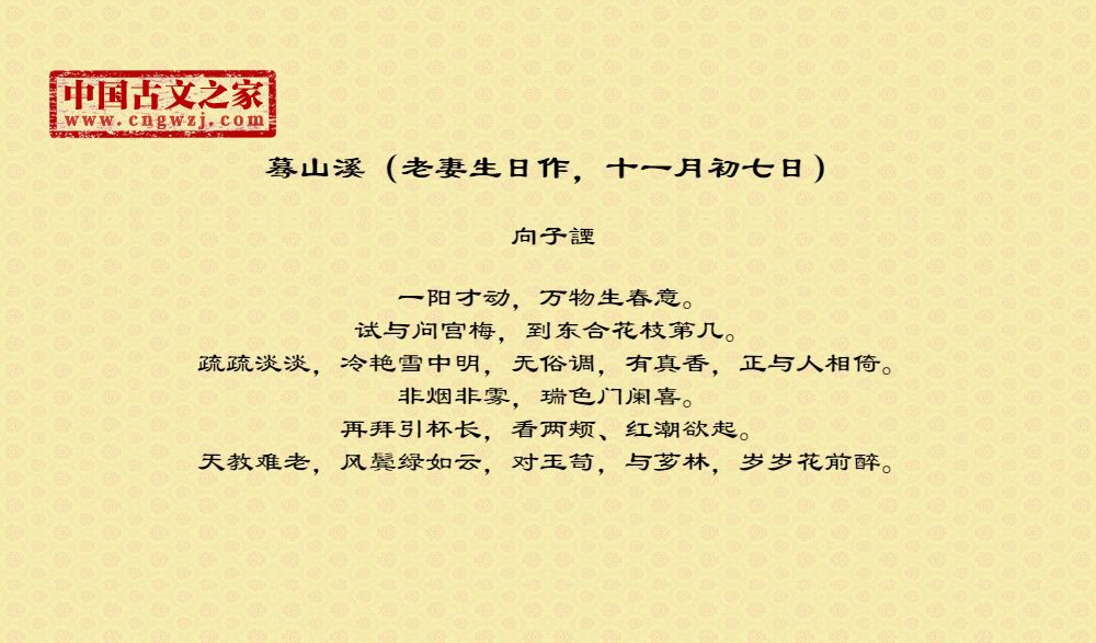 蓦山溪(老妻生日作,十一月初七日)