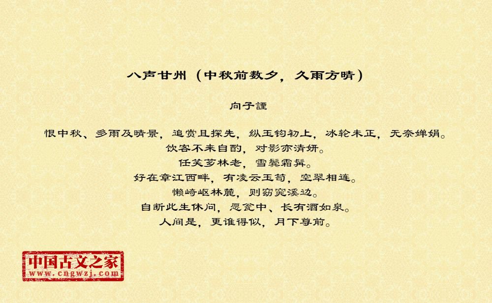 《八声甘州(中秋前数夕,久雨方晴)》的原文打印版(向子諲)