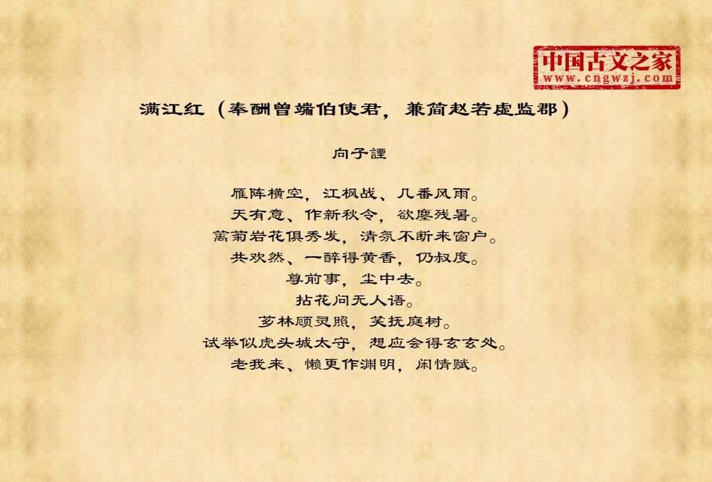 《满江红(奉酬曾端伯使君,兼简赵若虚监郡)》由向子諲创作