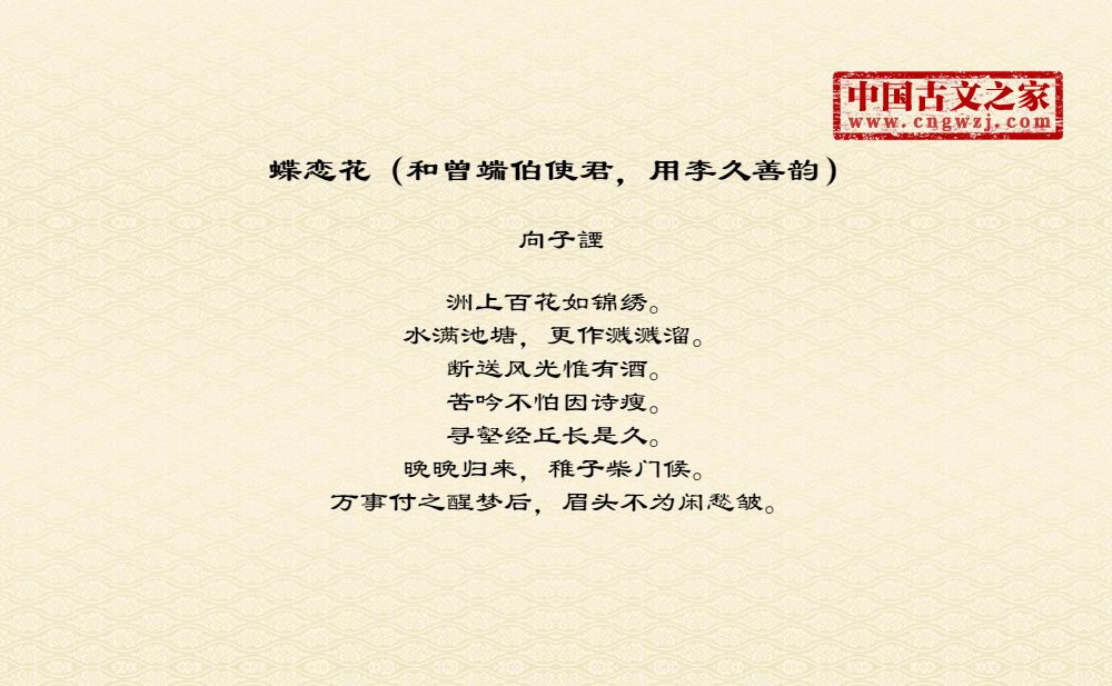 《蝶恋花(和曾端伯使君,用李久善韵)》的原文打印版(向子諲)