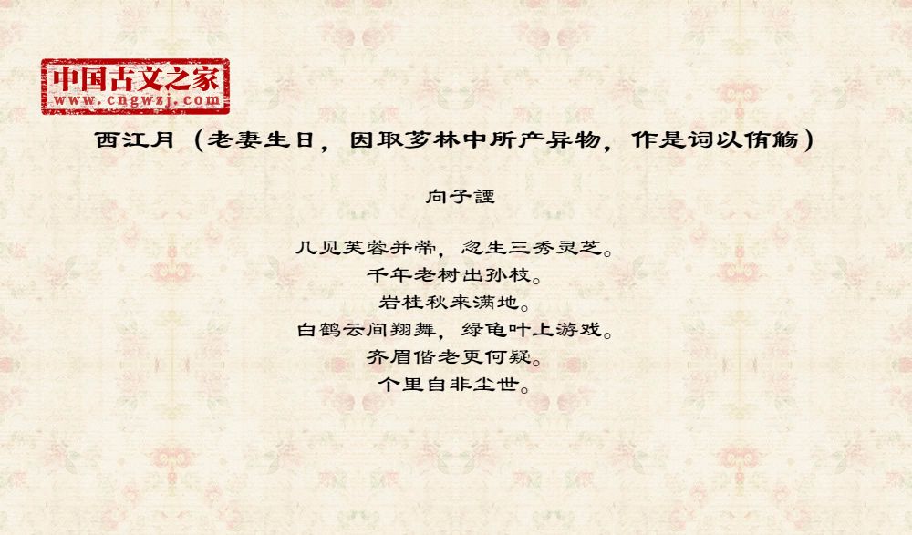 西江月(老妻生日,因取芗林中所产异物,作是词以侑觞)图片