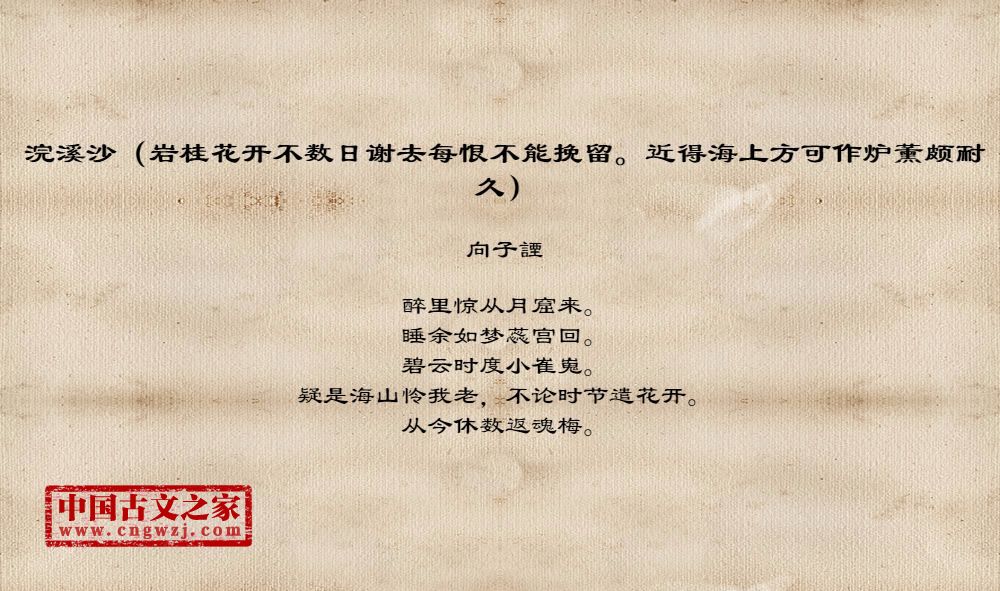 《浣溪沙(岩桂花开不数日谢去每恨不能挽留。近得海上方可作炉薰颇耐久)》由向子諲创作