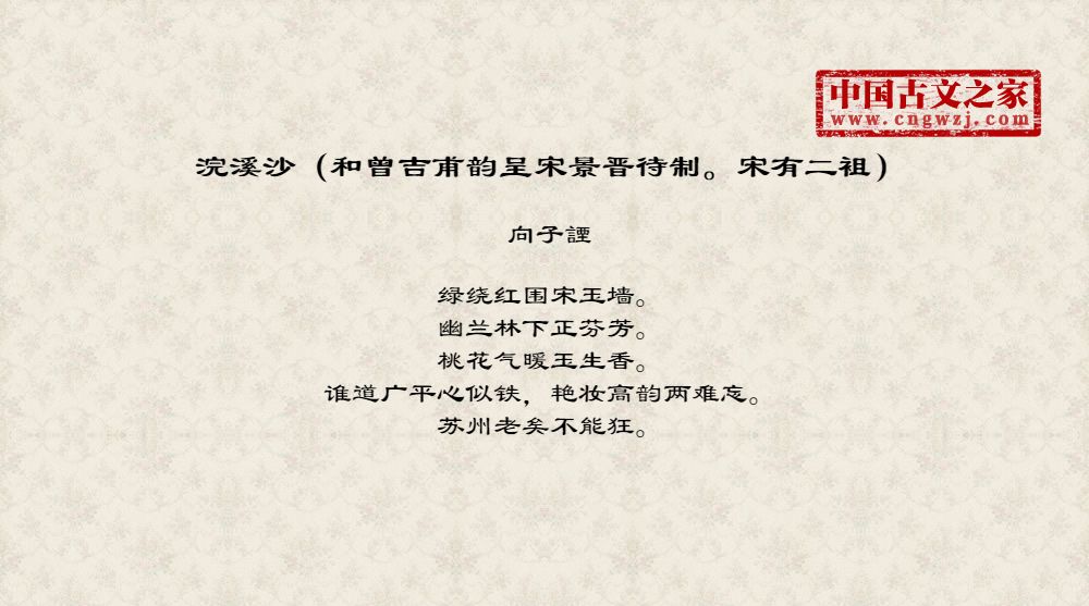 浣溪沙(和曾吉甫韵呈宋景晋待制。宋有二袓)