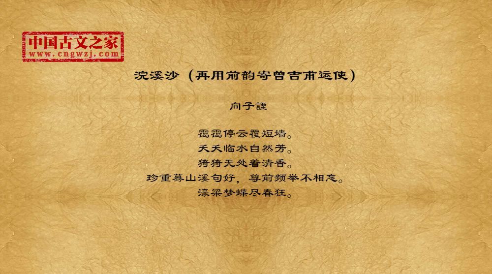 《浣溪沙(再用前韵寄曾吉甫运使)》的原文打印版(向子諲)