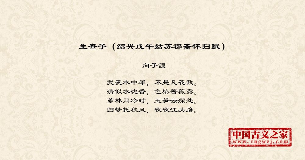 《生查子(绍兴戊午姑苏郡斋怀归赋)》的原文打印版(向子諲)