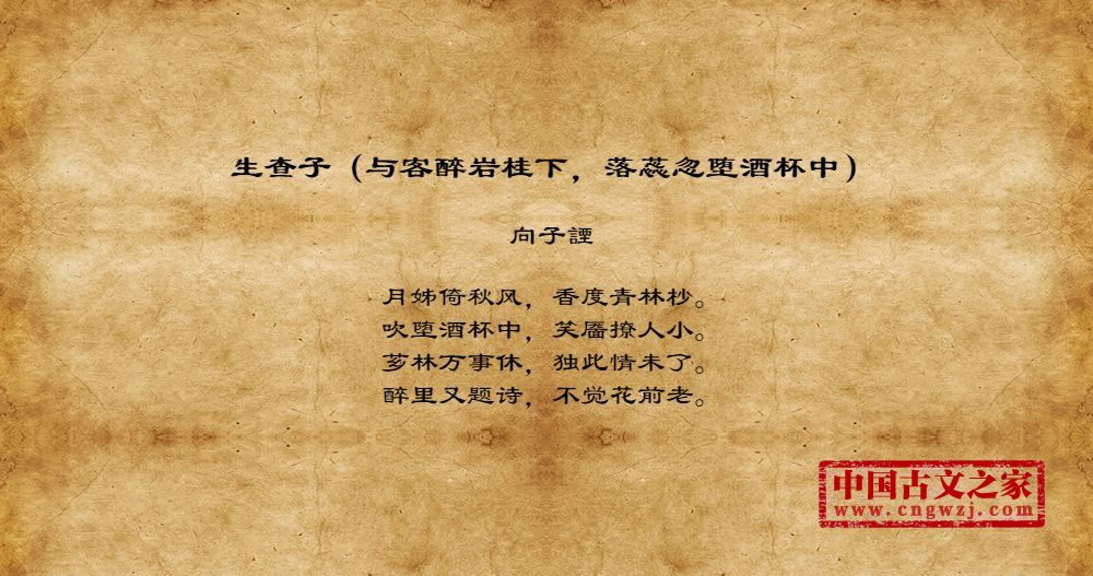 生查子(与客醉岩桂下,落蕊忽堕酒杯中)