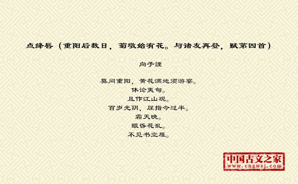 《点绛唇(重阳后数日,菊墩始有花。与诸友再登,赋第四首)》的原文打印版(向子諲)