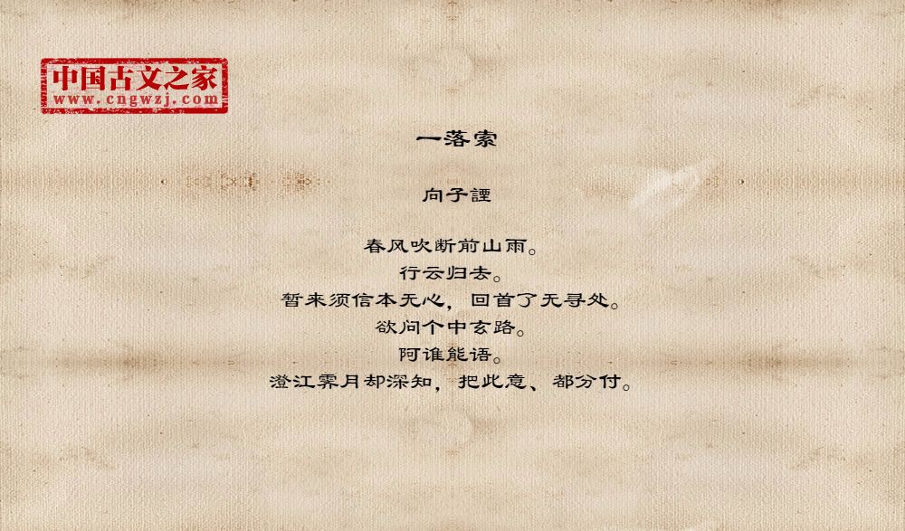 春风吹断前山雨。行云归去。暂来须信本无心,回首了无寻处。欲问个中玄路。阿谁能语。澄江霁月却深知,把此意、都分付。