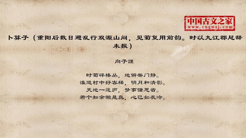 《卜算子(重阳后数日避乱行双源山间,见菊复用前韵。时以九江郡恳辞未报)》的原文打印版(向子諲)