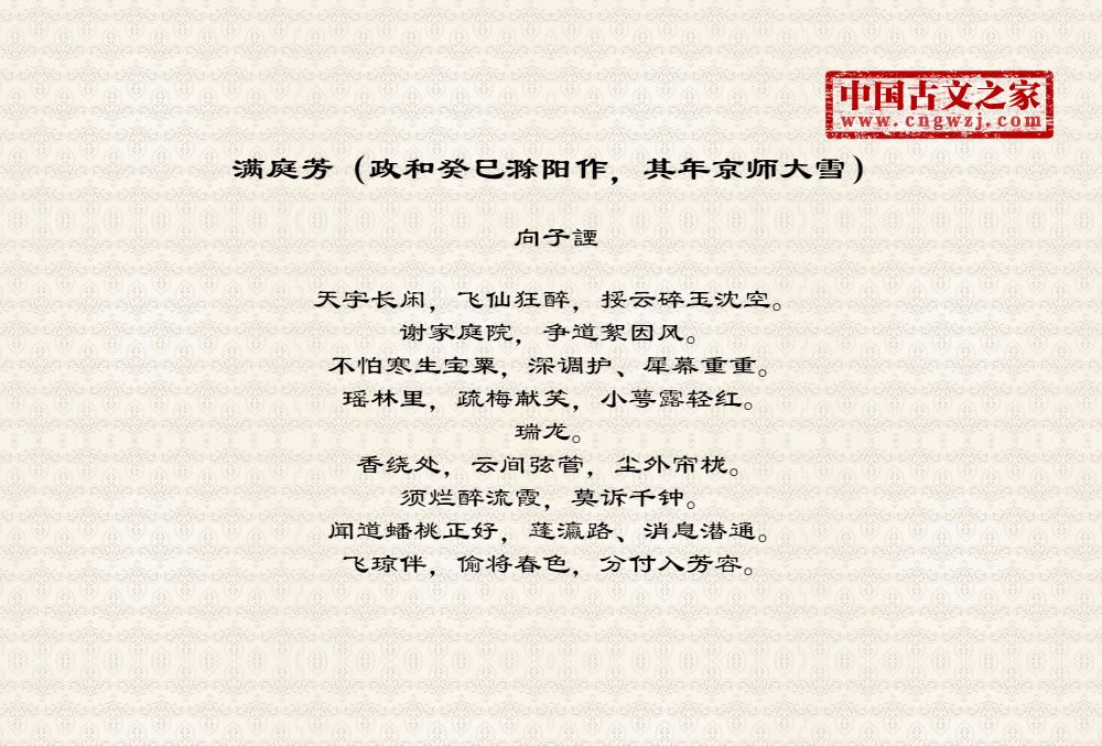 《满庭芳(政和癸巳滁阳作,其年京师大雪)》的原文打印版(向子諲)