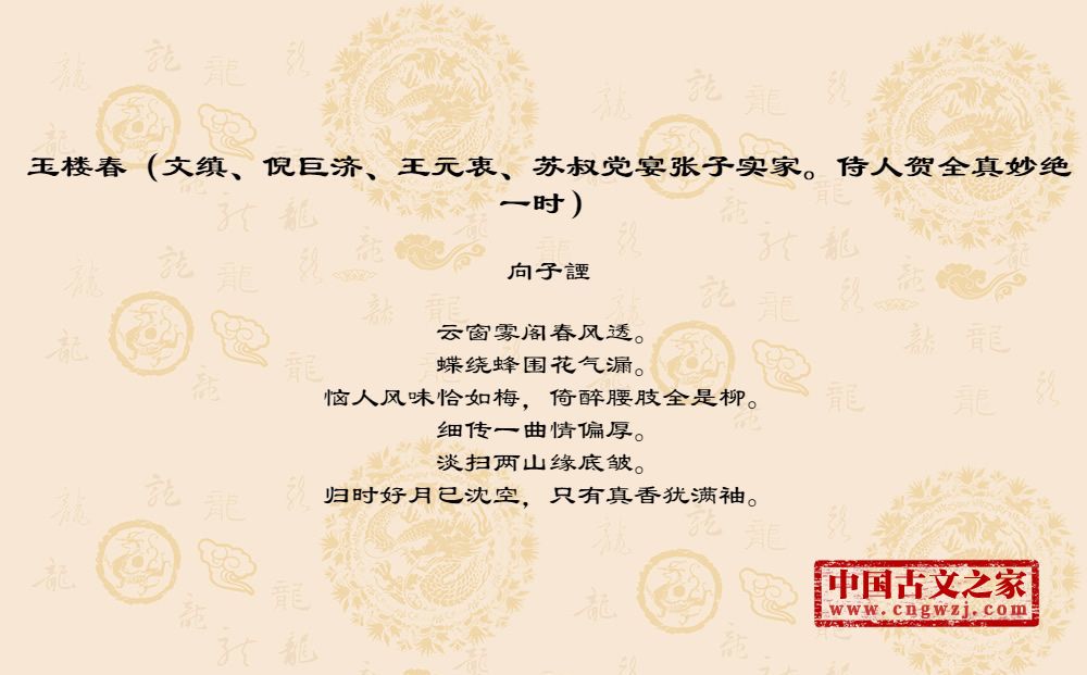 《玉楼春(文缜、倪巨济、王元衷、苏叔党宴张子实家。侍人贺全真妙绝一时)》的原文打印版(向子諲)