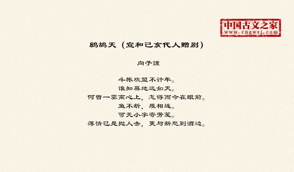 《鹧鸪天(宣和己亥代人赠别)》的原文打印版(向子諲)