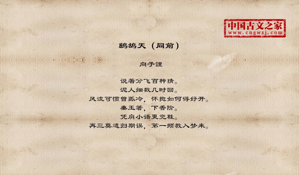 说明:古文之家的工作重心是对古诗文进行校对并注音,我们所提供的译文、注释均来自互联网收集聚合,仅供参考,文章所涉及的字、词发音请以拼音版作为主要参考。