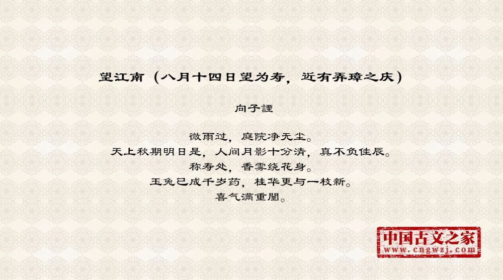 望江南(八月十四日望为寿,近有弄璋之庆)