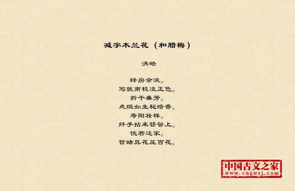《减字木兰花(和腊梅)》的原文打印版(洪皓)