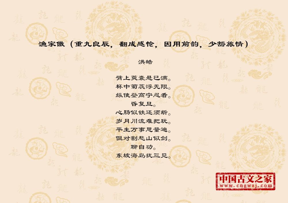 《渔家傲(重九良辰,翻成感怆,因用前韵,少豁旅情)》的原文打印版(洪皓)