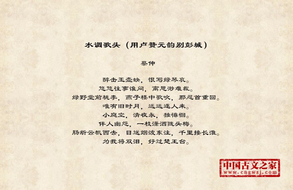 《水调歌头(用卢赞元韵别彭城)》的原文打印版(蔡伸)