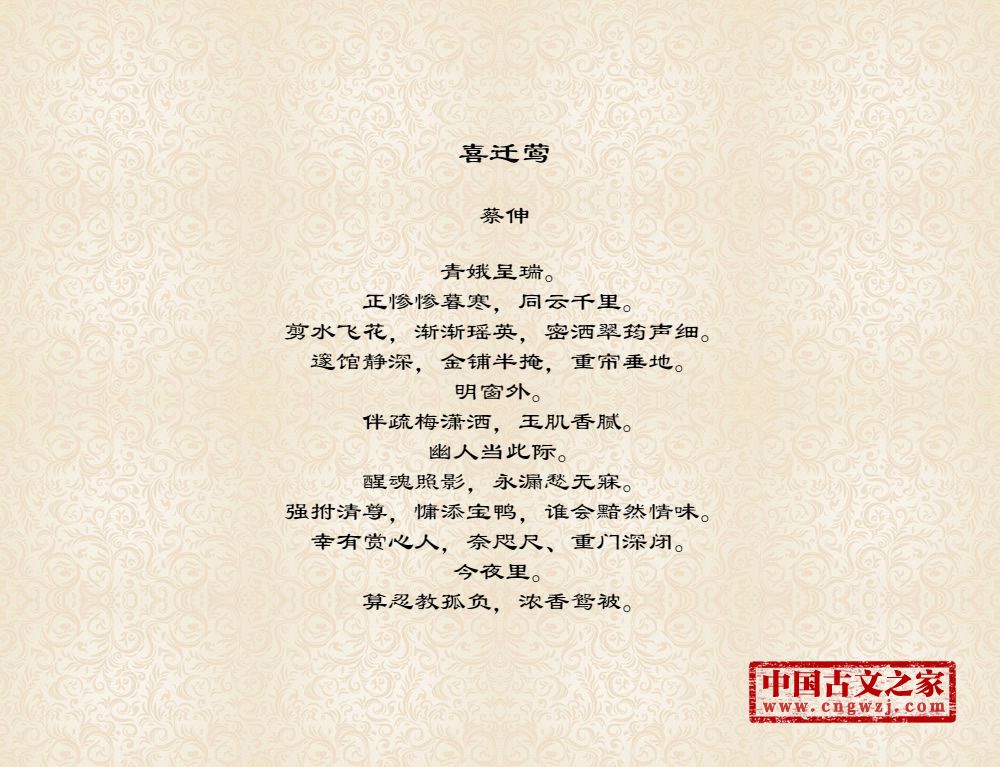 青娥呈瑞。正惨惨暮寒,同云千里。剪水飞花,渐渐瑶英,密洒翠筠声细。邃馆静深,金铺半掩,重帘垂地。明窗外。伴疏梅潇洒,玉肌香腻。幽人当此际。醒魂照影,永漏愁无寐。强拊清尊,慵添宝鸭,谁会黯然情味。幸有赏心人,奈咫尺、重门深闭。今夜里。算忍教孤负,浓香鸳被。