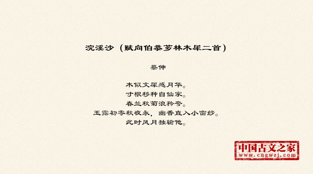 《浣溪沙(赋向伯恭芗林木犀二首)》的原文打印版(蔡伸)