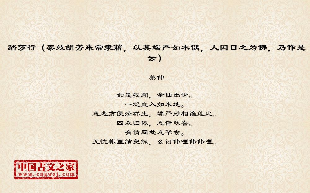 《踏莎行(泰妓胡芳来常隶籍,以其端严如木偶,人因目之为佛,乃作是云)》的原文打印版(蔡伸)