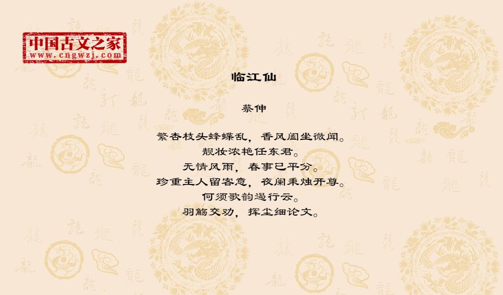 说明:古文之家的工作重心是对古诗文进行校对并注音,我们所提供的译文、注释均来自互联网收集聚合,仅供参考,文章所涉及的字、词发音请以拼音版作为主要参考。