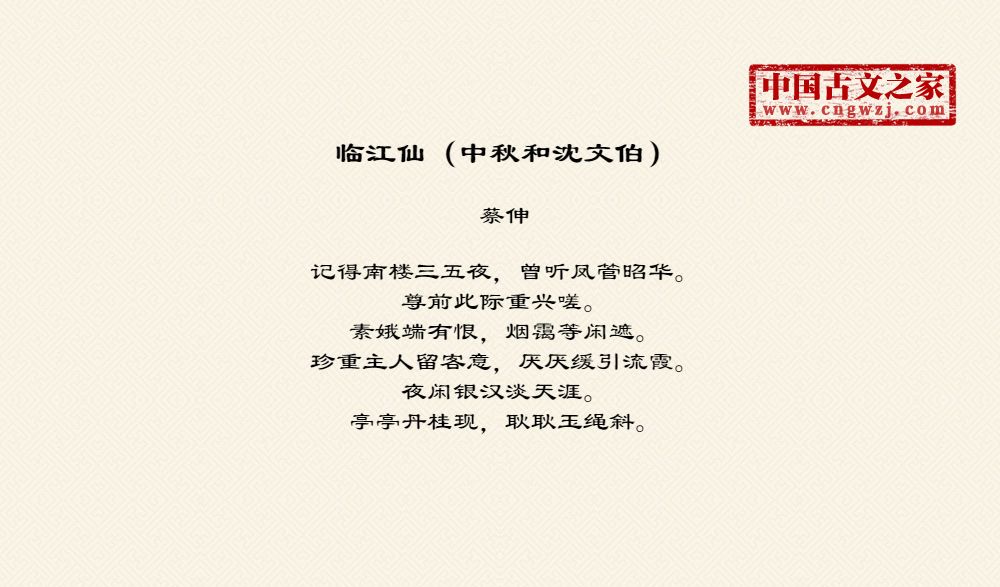 昨夜中秋今夕望,十分桂影团圆。玉人相对绿尊前。素娥有恨,应是妒婵娟。 人静小庭...