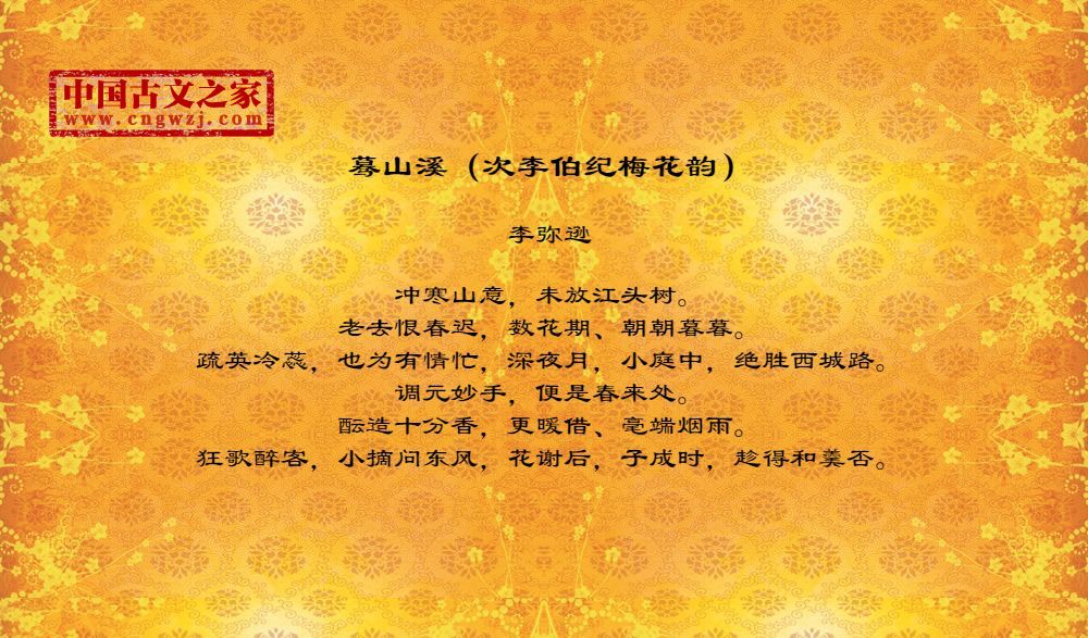 《蓦山溪(次李伯纪梅花韵)》的原文打印版(李弥逊)