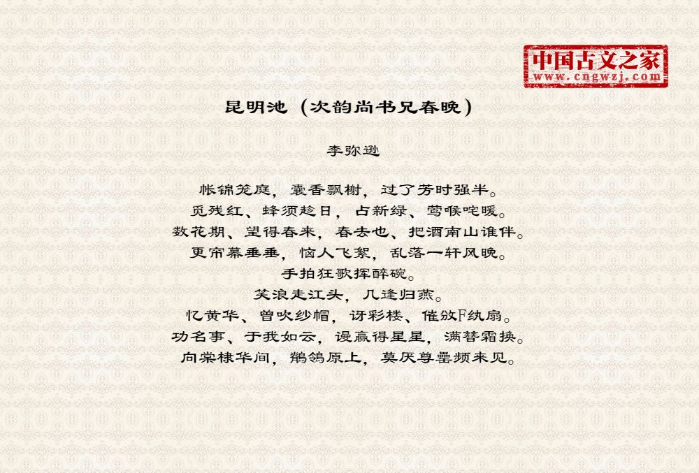 《昆明池(次韵尚书兄春晚)》的原文打印版(李弥逊)