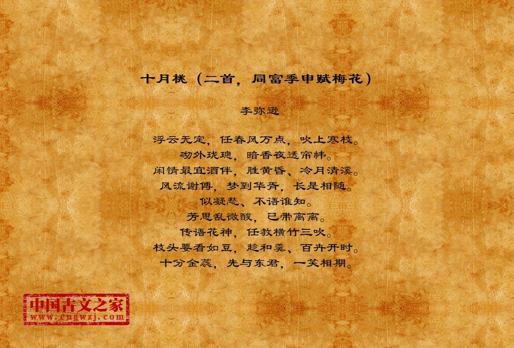 《十月桃(二首,同富季申赋梅花)》的原文打印版(李弥逊)