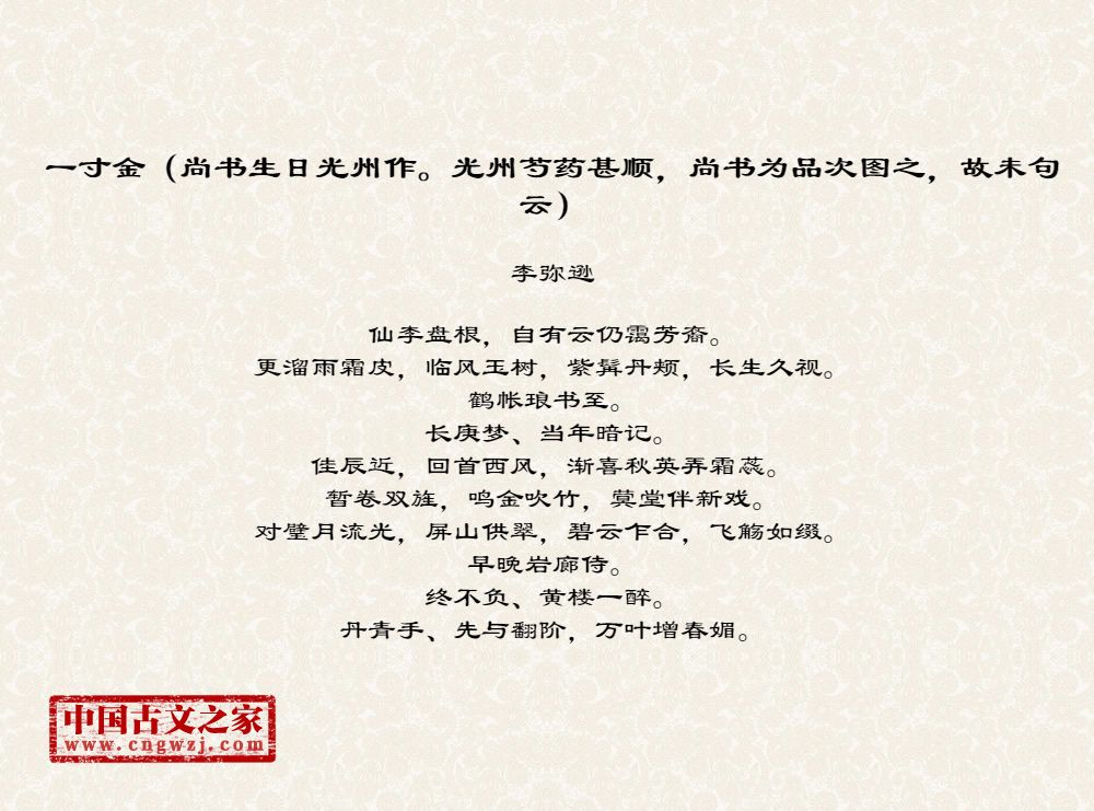 《一寸金(尚书生日光州作。光州芍药甚顺,尚书为品次图之,故未句云)》的原文打印版(李弥逊)