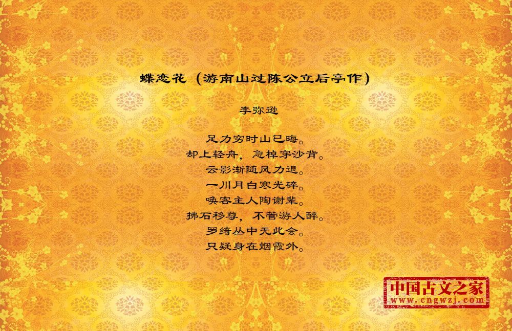 《蝶恋花(游南山过陈公立后亭作)》的原文打印版(李弥逊)