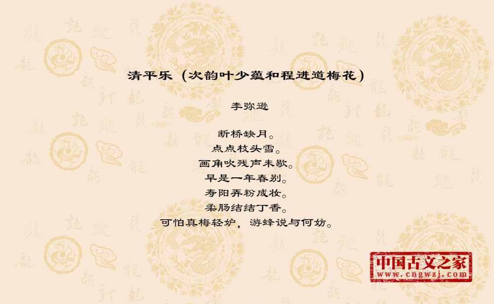 《清平乐(次韵叶少蕴和程进道梅花)》的原文打印版(李弥逊)
