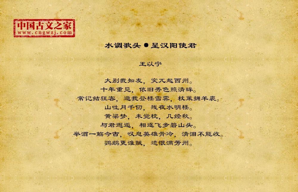 大别我知友,突兀起西州。十年重见,依旧秀色照清眸。常记鲒狂客,邀我登楼雪霁,杖策拥羊裘。山吐月千仞,残夜水明楼。黄粱梦,未觉枕,几经秋。与君邂逅,相逐飞步碧山头。举酒一觞今古,叹息英雄骨冷,清泪不能收。鹦鹉更谁赋,遗恨满芳州。