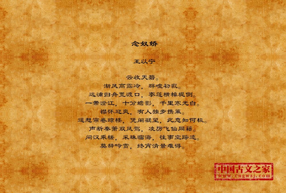 云收天碧。渐风高露冷,群喧初寂。远浦归舟荒渡口,搴篷横棹堤侧。一带澄江,十分蟾影,千里寒光白。襟怀迎爽,有人独步携策。遥想帘卷琼楼,凭阑凝望,此意知何极。声断秦箫双凤驾,凌厉飞仙同籍。问汉乘槎,采珠临海,往事空踪迹。莫辞吟赏,终宵清景难得。