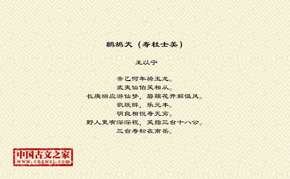 《鹧鸪天(寿杜士美)》的原文打印版(王以宁)