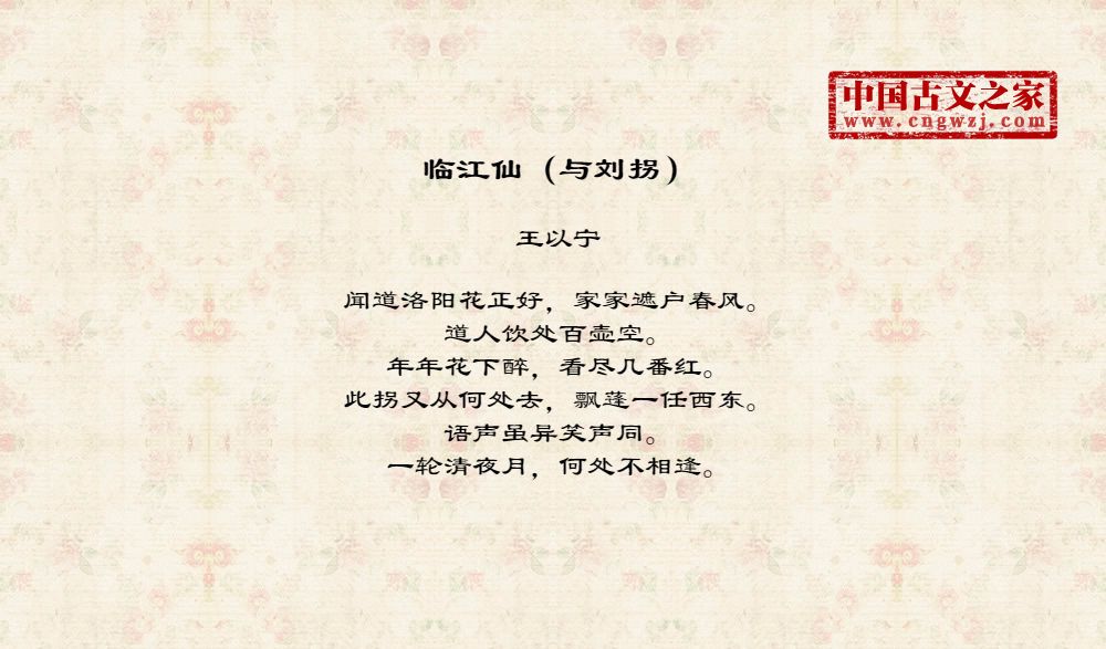 《临江仙(与刘拐)》的原文打印版(王以宁)