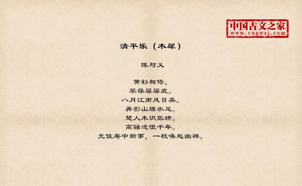 黄衫相倚。翠葆层层底。八月江南风日美。弄影山腰水尾。楚人未识孤妍。离骚遗恨千年。无住庵中新事,一枝唤起幽禅。