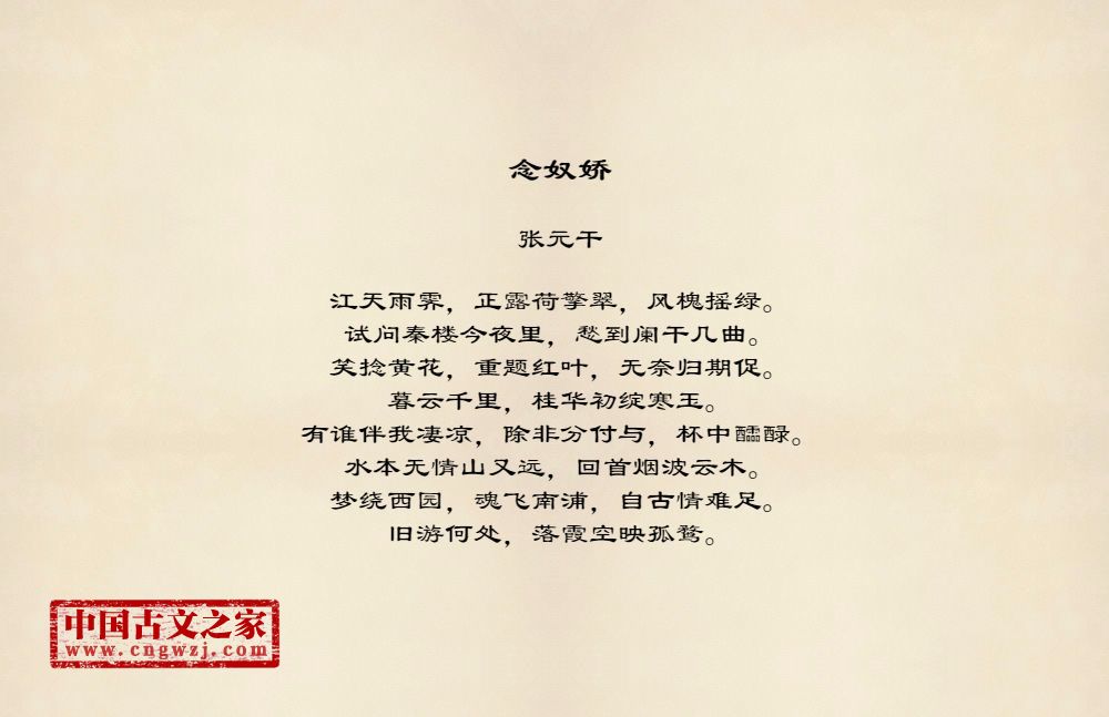 江天雨霁,正露荷擎翠,风槐摇绿。试问秦楼今夜里,愁到阑干几曲。笑捻黄花,重题红叶,无奈归期促。暮云千里,桂华初绽寒玉。有谁伴我凄凉,除非分付与,杯中醽醁。水本无情山又远,回首烟波云木。梦绕西园,魂飞南浦,自古情难足。旧游何处,落霞空映孤鹜。
