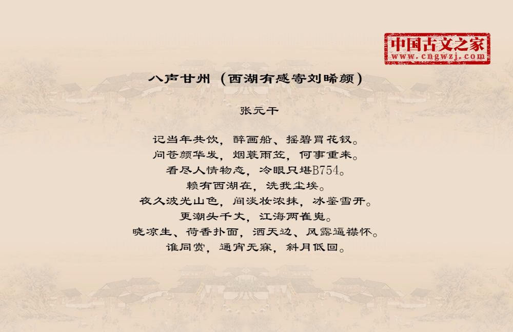 《八声甘州(西湖有感寄刘晞颜)》的原文打印版(张元干)