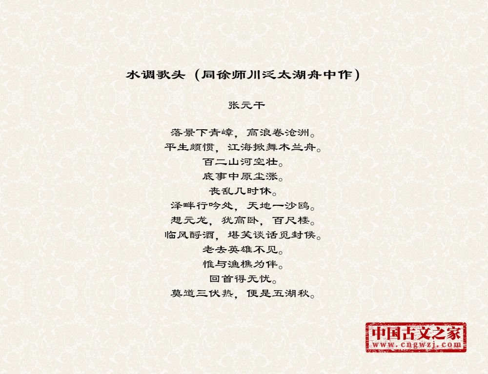 《水调歌头(同徐师川泛太湖舟中作)》的原文打印版(张元干)