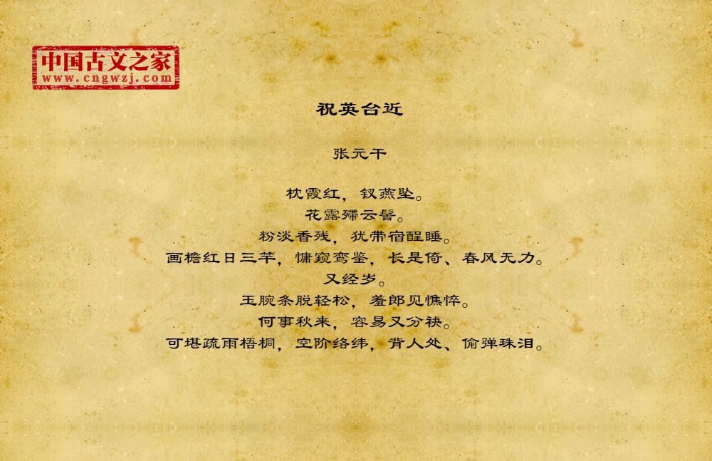 元干出身书香门第。其父名动,进士出身,官至龙图阁直学士,能诗。张元干受其家风影响,从小聪明好学,永泰的寒光阁、水月亭是他幼年生活和读书处。十四五岁随父