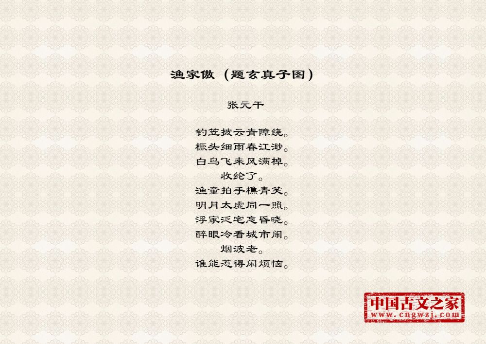 钓笠披云青障绕。橛头细雨春江渺。白鸟飞来风满棹。收纶了。渔童拍手樵青笑。明月太虚同一照。浮家泛宅忘昏晓。醉眼冷看城市闹。烟波老。谁能惹得闲烦恼。