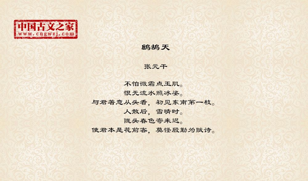 不怕微霜点玉肌。恨无流水照冰姿。与君著意从头看,初见东南第一枝。人散后,雪晴时。陇头春色寄来迟。使君本是花前客,莫怪殷勤为赋诗。