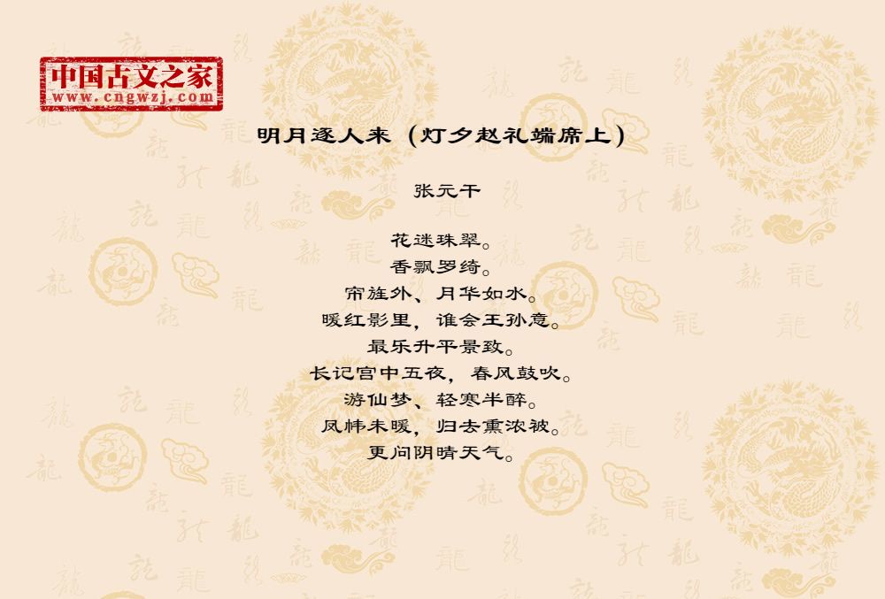 《明月逐人来(灯夕赵礼端席上)》由张元干创作