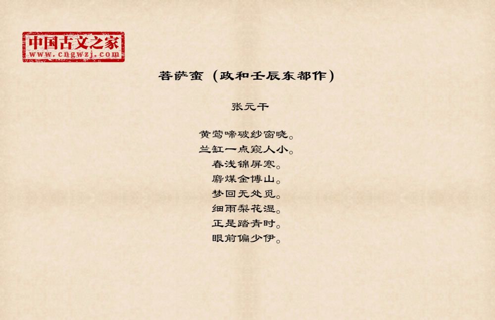 《菩萨蛮(政和壬辰东都作)》的原文打印版(张元干)